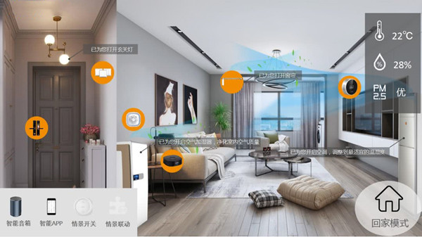6、場景設(shè)置:回家時(shí),在家門口用遙控器直接按"回家"場景。